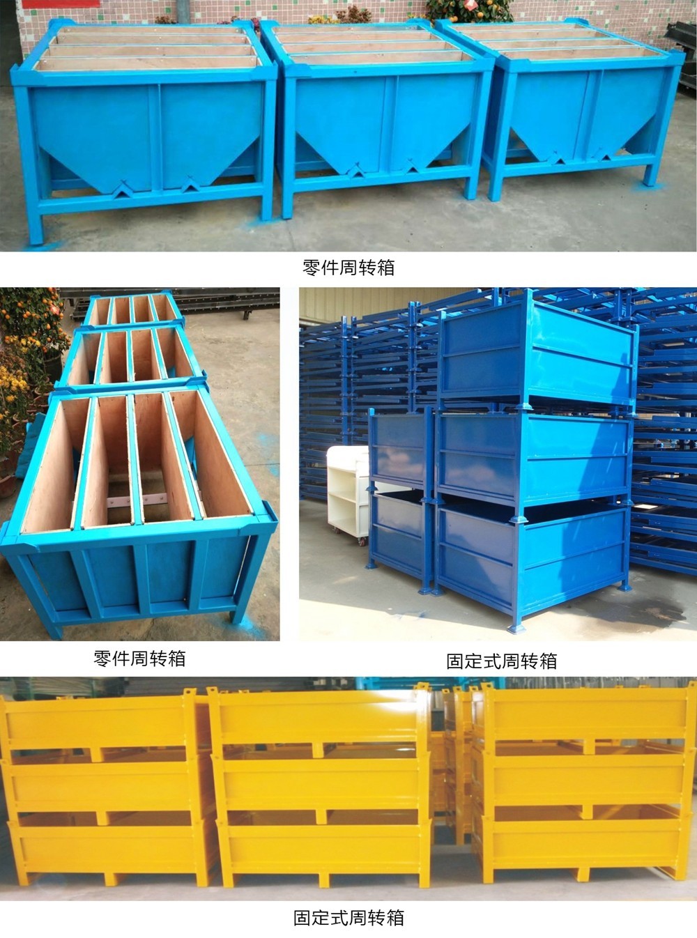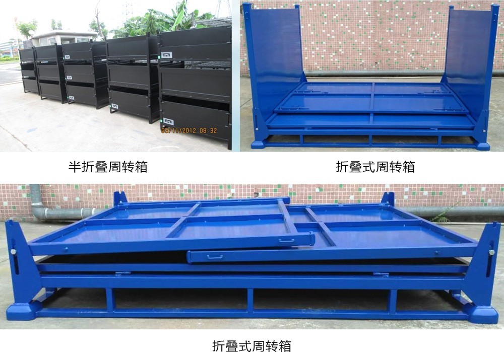 周转箱也成为物流箱,可分为固定式、折叠式;单个承载1000kg-3000kg,满载后自身可实行堆垛3-4层,需配合机动叉车使用。